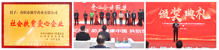 公司為白河街道貧困戶捐助30萬元,做為股金入股企業(yè),年分紅利3萬元,由街道辦事處為貧困戶購買公益性崗位和做為貧困戶收益,為貧困戶提供更加有效的就業(yè)保障。提高貧困戶收入。2018年10月16日舉行隆重的授牌儀式,會(huì)上市領(lǐng)導(dǎo)對(duì)南陽仙草藥業(yè)有限公司的扶貧工作給予高度贊場(chǎng)和肯定,并鼓勵(lì)其他企業(yè)向仙草藥業(yè)學(xué)習(xí)。